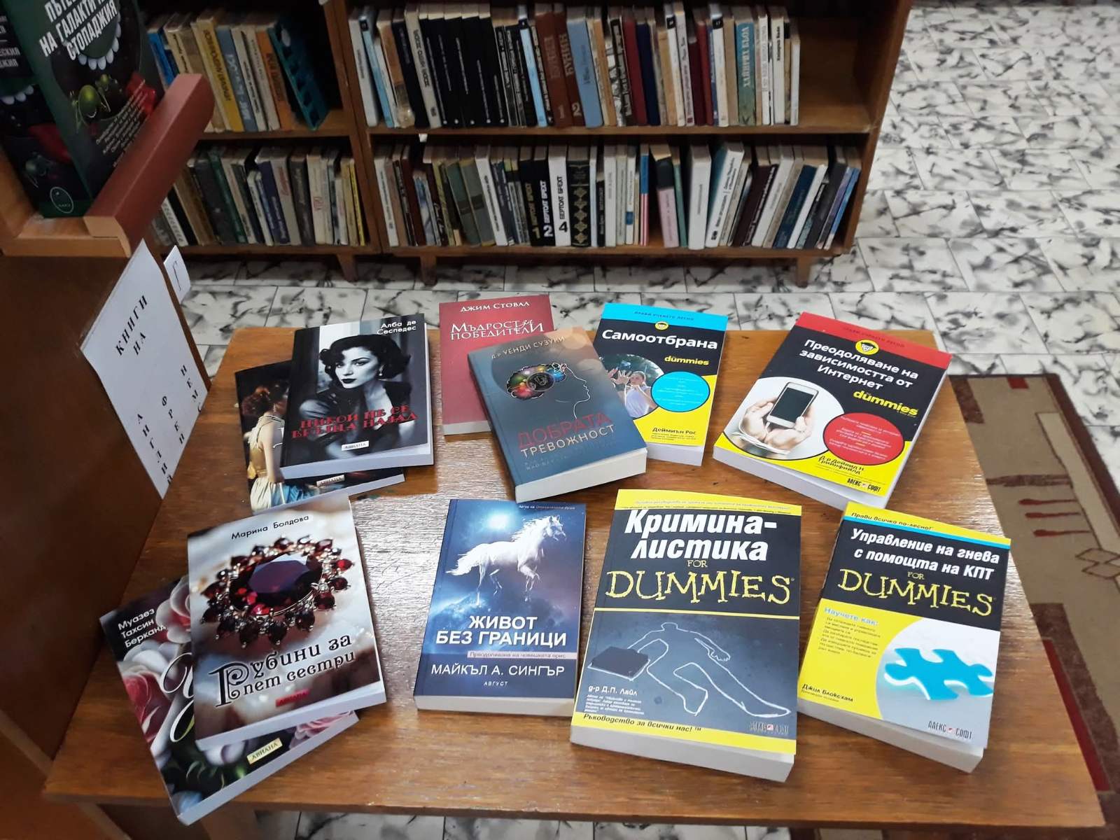 В рамките на проекта библиотечният фонд беше обогатен с 267 нови книги на стойност 4 776 лв. (2 441,93 евро). Закупените издания обхващат широк тематичен спектър от художествена и детска литература, история, психология, право, педагогика, личностно развитие, екология, финанси, география до биографии на значими личности от българската и световната политика и история.