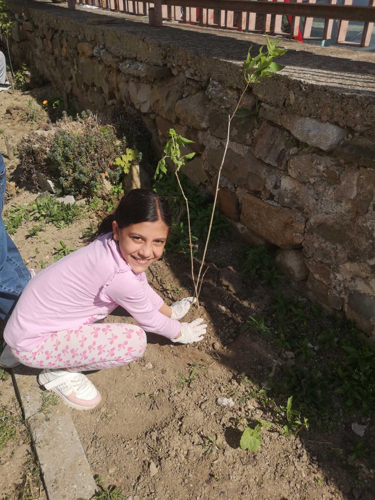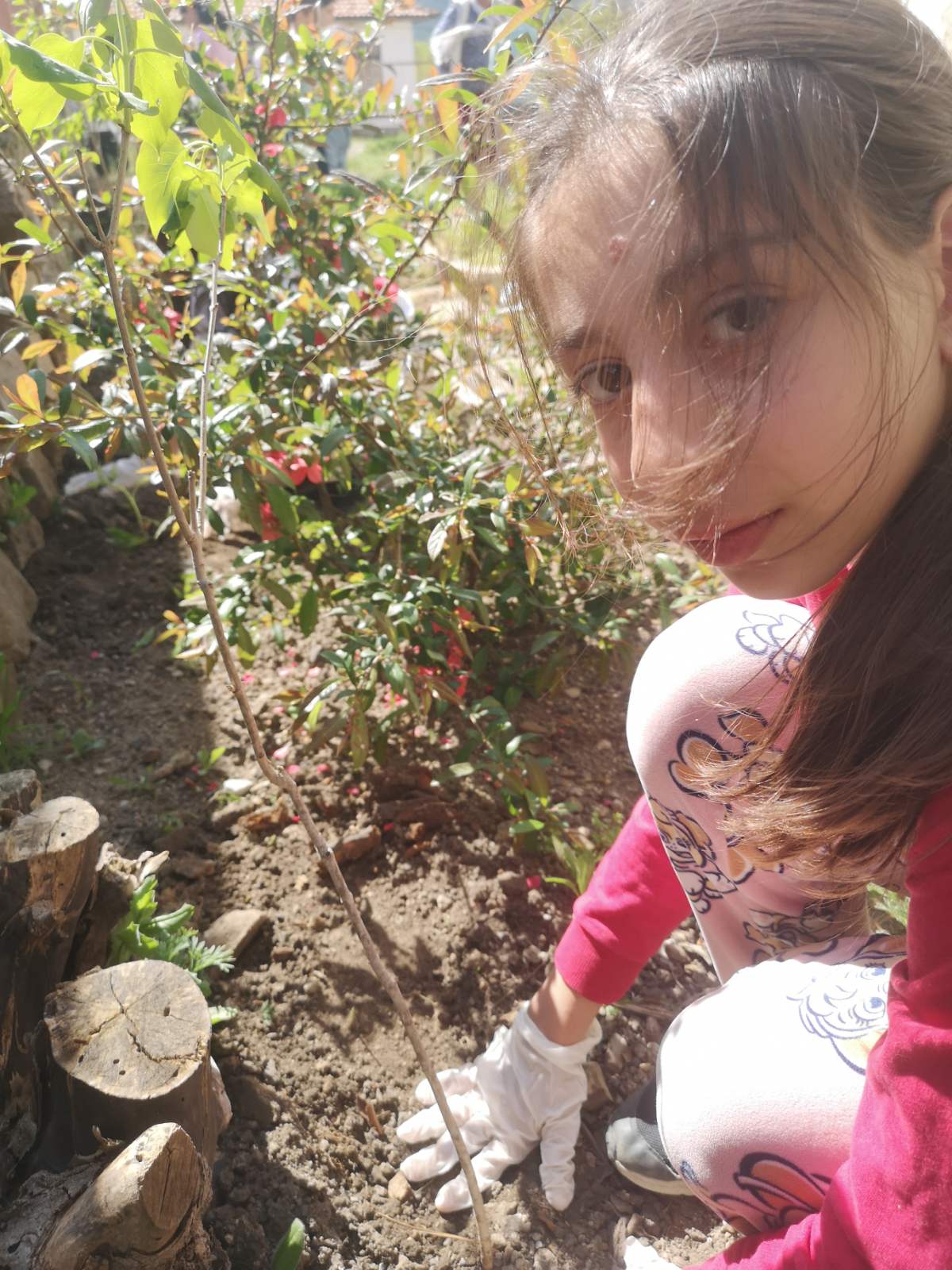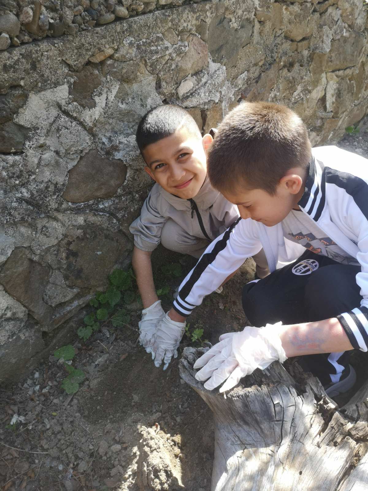 В компанията на топлите лъчи на слънцето, малките екоентусиасти и техните ръководители засадиха в двора на местната библиотека люляци, хризантеми и семена на цветя, след което отправиха послания за опазване на околната среда.
