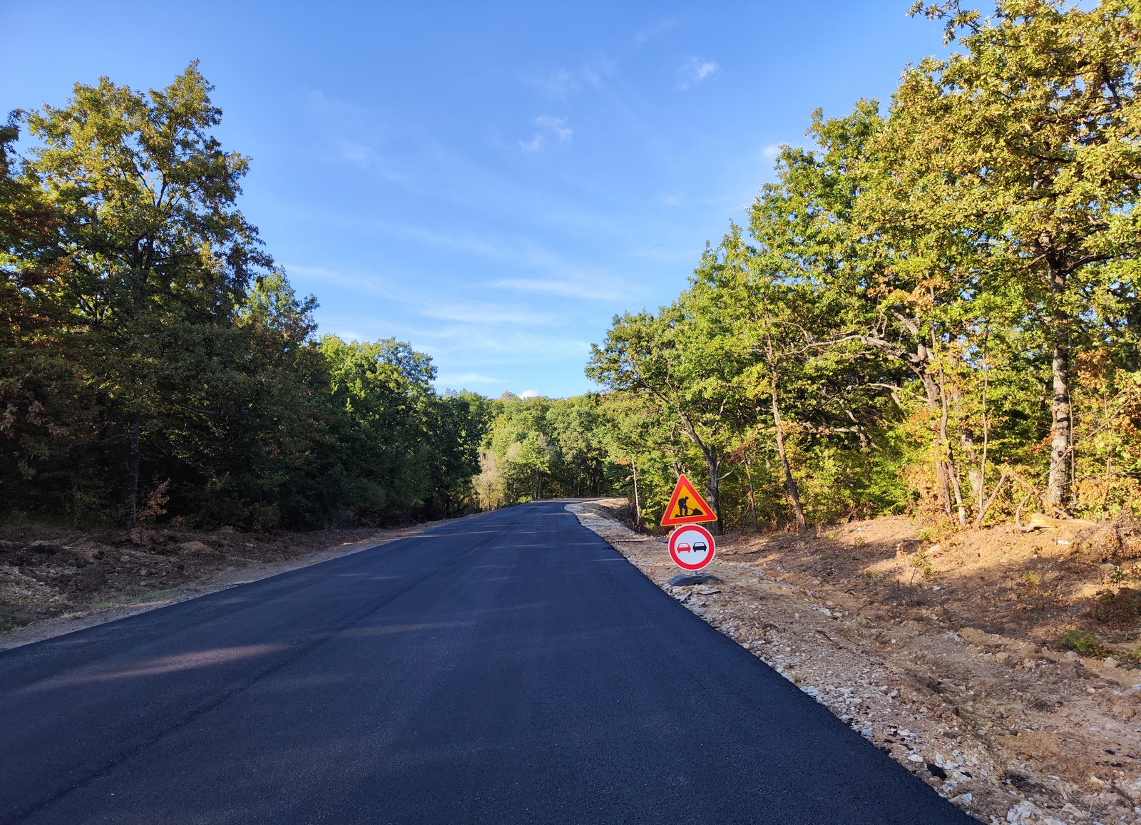 Строително-монтажните дейности по отсечката стартираха в началото на месец август т.г. С ускорени темпове фирмата изпълнител ДЗЗД „Пътища Котел“ извърши разчистване на дървесната и храстовата растителност и на земните и изкопни дейности. Изгради нова тръбно-канална мрежа и нови подземни удобства за доставчиците на оптични и електро услуги. След асфалтирането на последния еднокилометров участък на трасето, следва да се извърши полагане на хоризонтална маркировка, поставяне на мантинели и вертикална сигнализация.