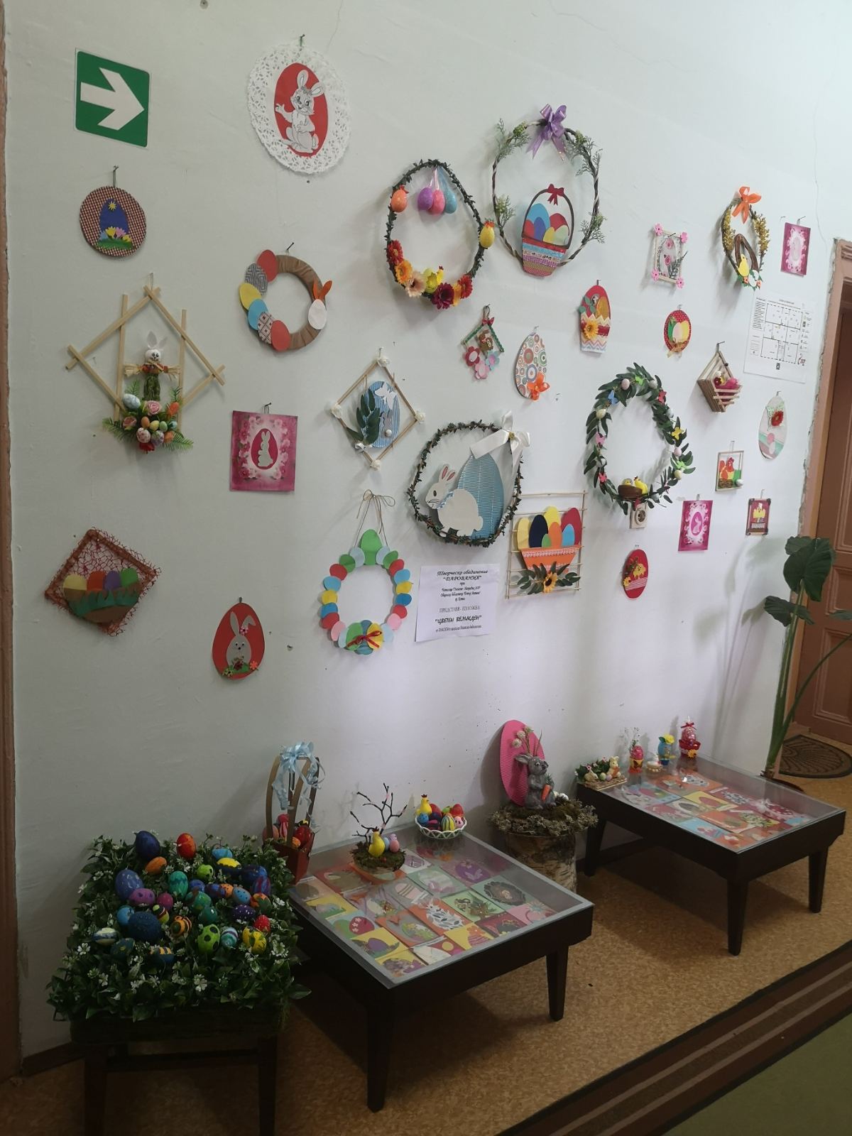 Великденският символ – яйцето беше в центъра и на изложбата, която подредиха деца от творческо обединение „Дарования“ при Народно читалище „Съгласие-Напредък 1870“ и Общинска библиотека „Петър Матеев“ – Котел. По традиция част от техните творби бяха дарени на възрастни хора от община Котел, в навечерието на Великден, а друга част, остана да краси фоайето на местната библиотека.