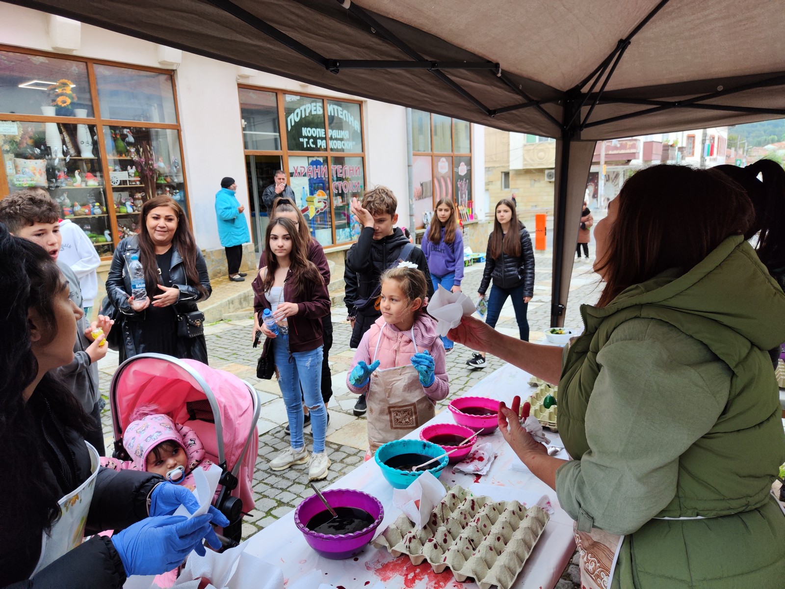 В нея, деца на различна възраст боядисаха близо 1500 великденски яйца, с помощта на своите родители и близки, и с активното съдействие на служители-доброволци от местната администрация.
