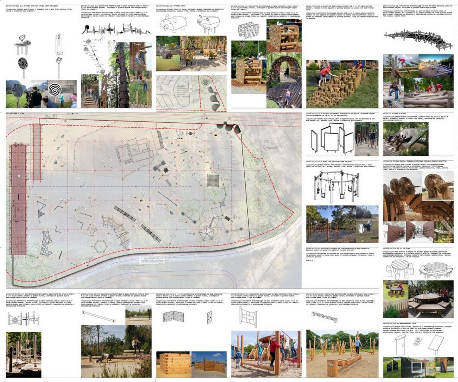 Комплексът ще се разполага още със съоръжения за различни възрасти, уникални и разработени специално за него. В него ще се изградят тренажори, павилион за рекламни материали, малки дървени къщички, дървено-въжени люлки, мостчета, катерушки, огледални съоръжения за мултиплициране на образи, зони за почивки с дървени масички и столчета, санитарни възли, съоръжения за баланс и др.